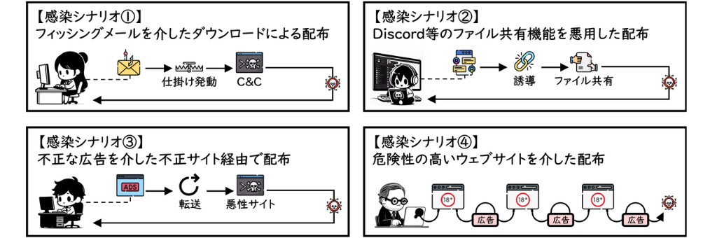 ランサムウェアと違って感染した端末上でユーザーに気づかれるような動作をしないため、感染に気付けないこともあります。InfoStealerは、多様な感染経路を展開できるだけでなく、そのステルス性と広範な情報収集能力により、サイバー犯罪者にとって極めて有効なツールとなっています。