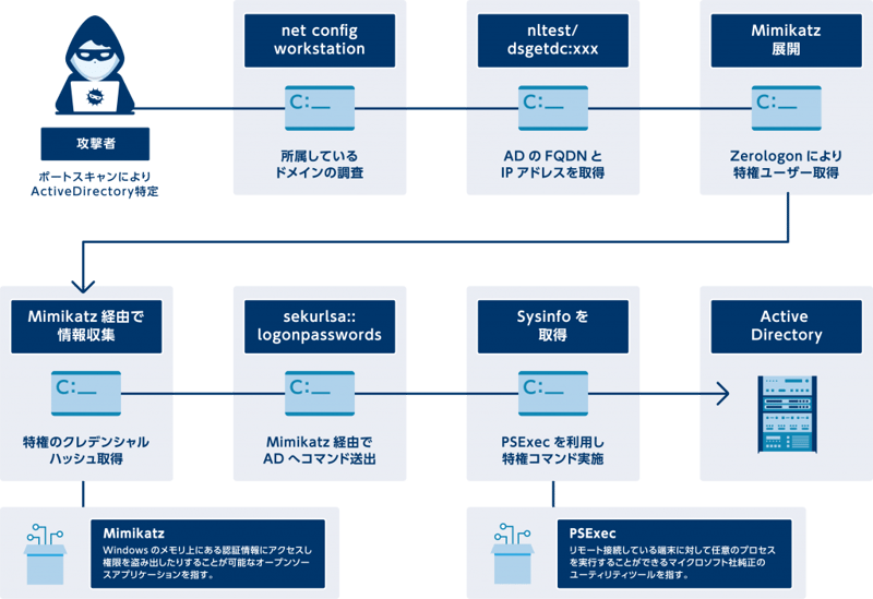 図 Zerologonを悪用した攻撃の流れ