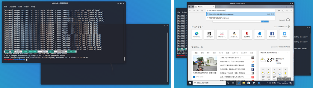 攻撃者はこの様なサイトを利用することで侵入可能なデバイスを簡単に見つけることができます。また、接続するためのパスワードも専用のクラックツールを利用することで安易な組み合わせのパスワードであれば数十秒で特定できてしまい、堂々と正規の権限でサインインして乗っ取りが可能になります。(下図は弊社検証環境でテストしたものです。)