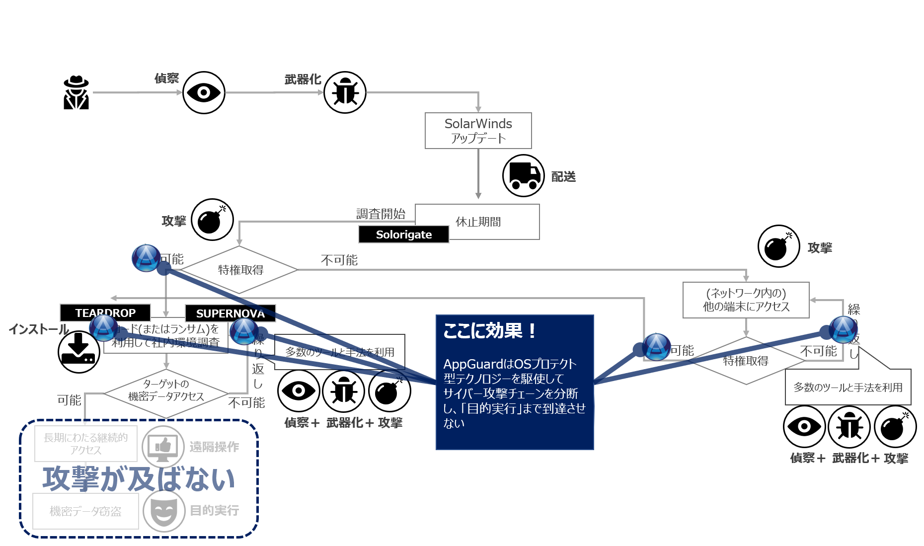 図6 SolarWinds社製品のサプライチェーン攻撃に対するAppGuardの効果(クリックで図の表示)