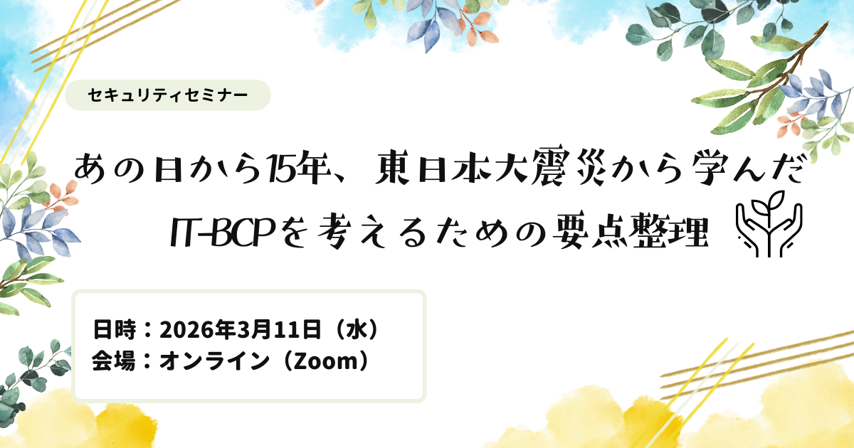 | 開催日程 | 2026年3月11日水曜日 16:00~17:00 |
